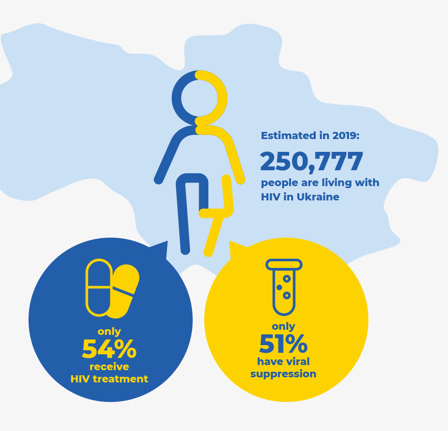 Overall, this means that only 54% of all people living with HIV in Ukraine receive treatment and 51% have viral suppression.